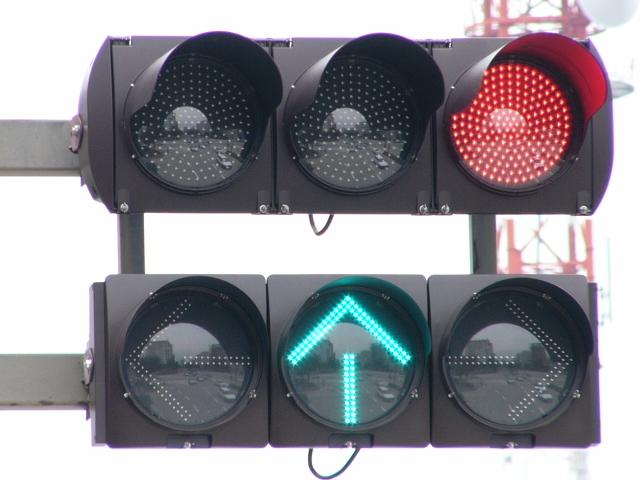 右左折車分離方式の歩車分離式信号は愛知県で古くから採用されており、現在でも名古屋市内の大きな十形交差点でよく見かけます。