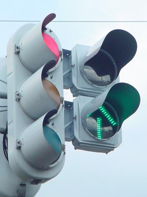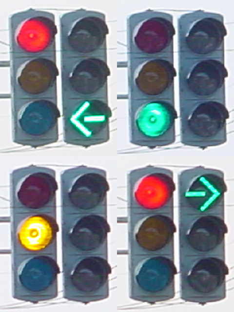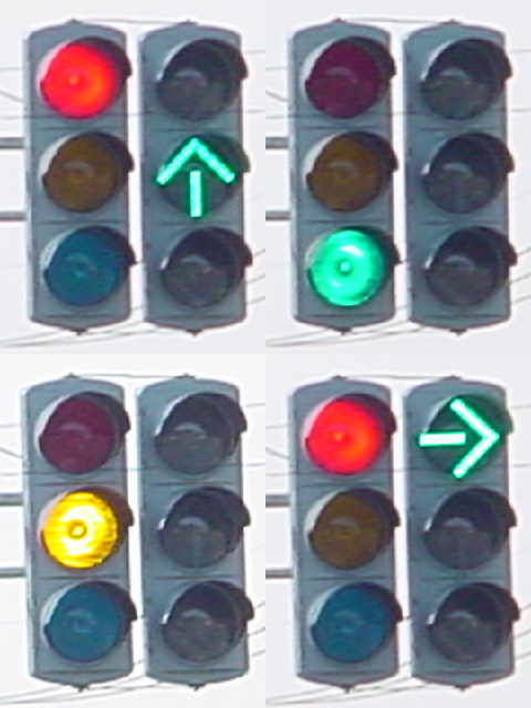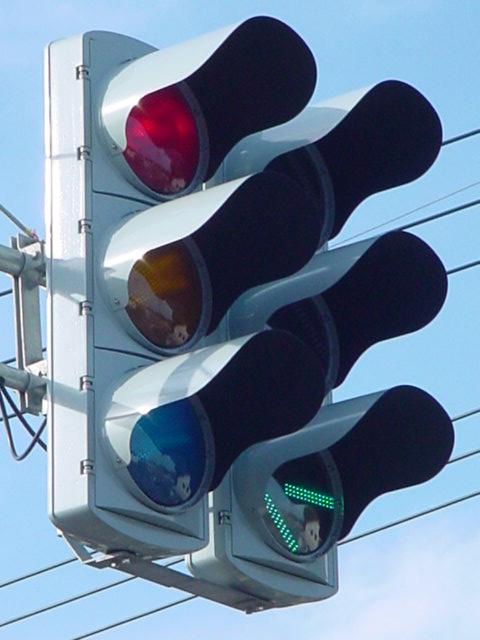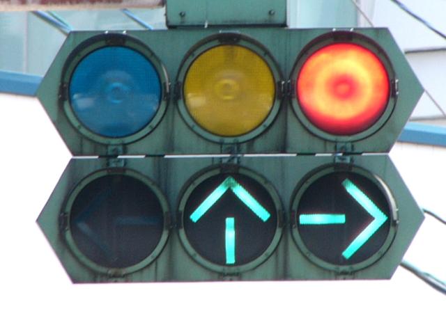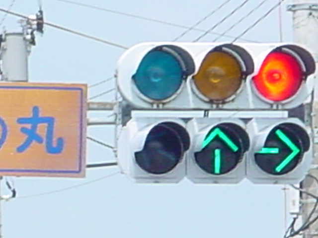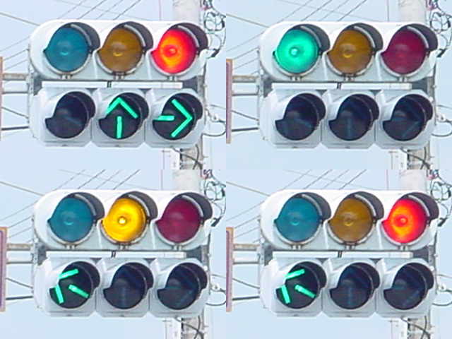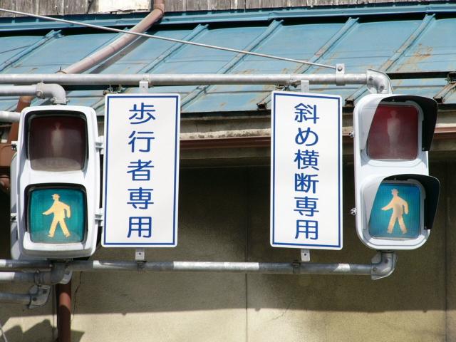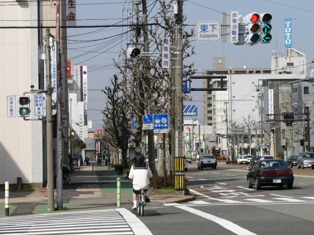 この交差点の場合、路面電車が直進しますので、普通の信号サイクルでは右折待ち車両が路面電車の通行を妨げてしまうため、その点ではよい信号サイクルと言えるかもしれません。