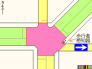 ・「Pおまち」は押ボを押した時点で「おまちください」と表示されるという意味です。押してから歩車分離信号作動の手前のH7まで表示され続けます。 |