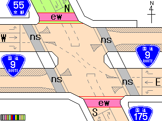 画像は東洞院通との交差点です。車両用灯器には「歩車分離信号」標示板が併設されています。 | ||||||||||||||||||||||||||||||||||||||||||||||||||||||||||