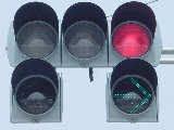 従道路に車両あり(感知した)、歩行者なしの場合 従道路に車両なし、歩行者あり(押ボタンを押した)の場合 従道路に車両あり(感知した)、歩行者あり(押ボタンを押した)の場合