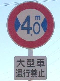 4.0mを超える大型車は通行してはいけないということですね。(平成19年6月2日の法令改正により「大型」の範囲が変更となっています。画像は法令改正前に撮影したものです。)