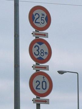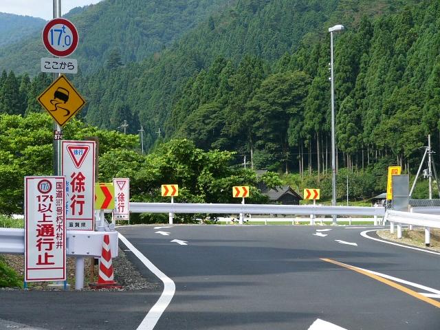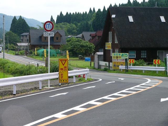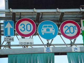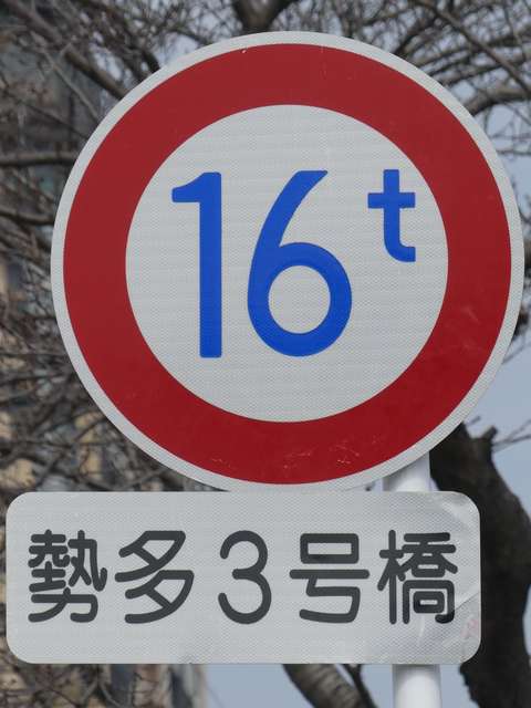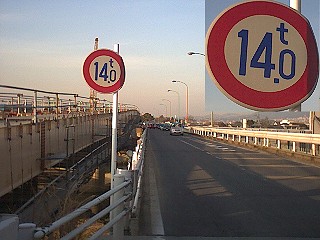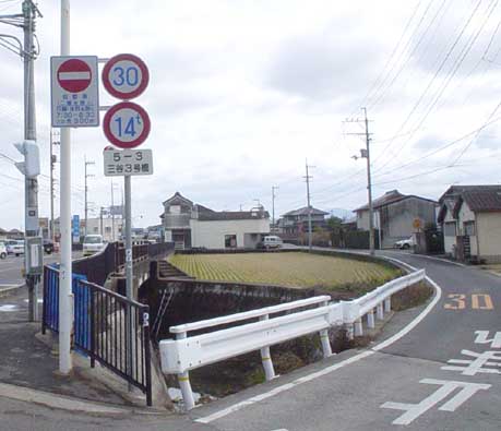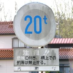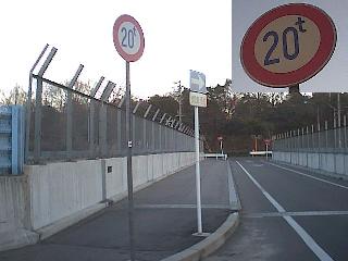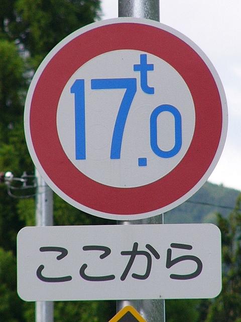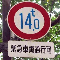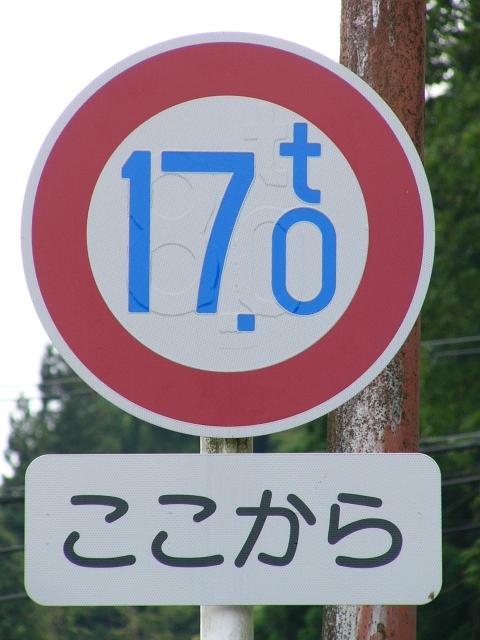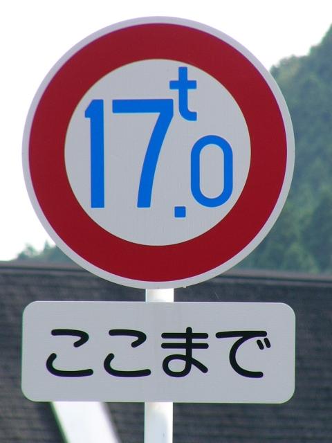一方通行は「自動車・原付」となっていますが、もし反対側から20tを越える軽車両がやって来たらどうするんでしょう? ・・・あり得ませんが。 |