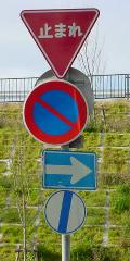 ??? 標識の順番を間違って設置しています。 撮影 兵庫県尼崎市 掲載 2002/11/13 |