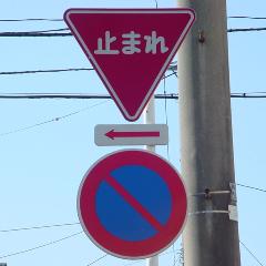 ??? 標識の順番を間違って設置しています。 撮影 奈良県生駒市 掲載 2002/11/13 |