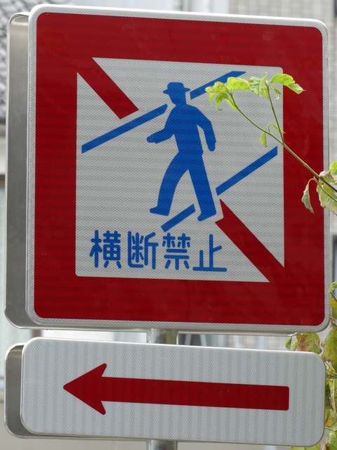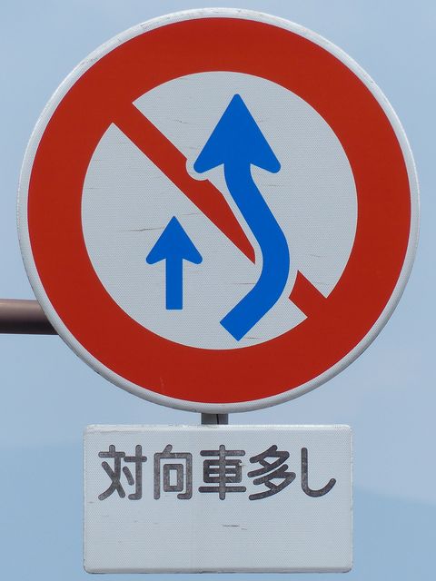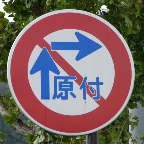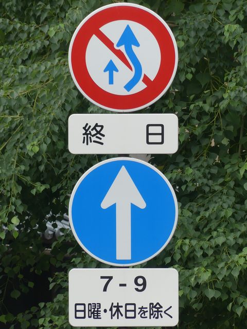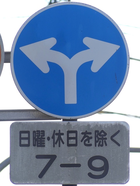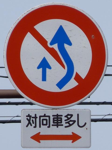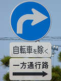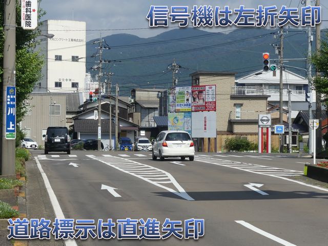 | 交差点の形状に合っていない「指定方向外進行禁止」標識 |