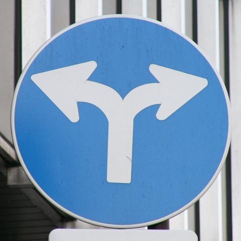 | 1本のアームに2方向の標識を設置 |