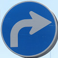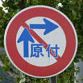 左折後の右折禁止を表しています。「指定方向外進行禁止」標識を描くと向きがおかしくなるので、あえてバツ印で表しているようです。 |