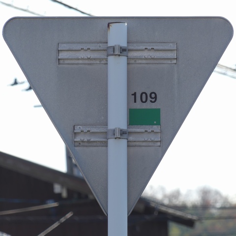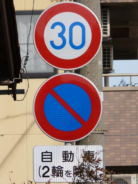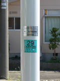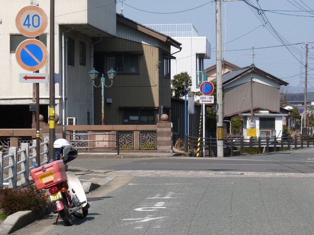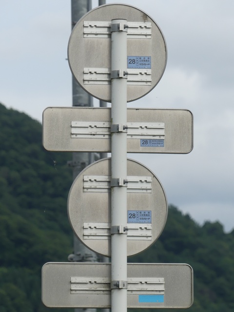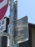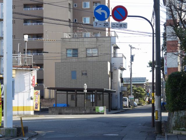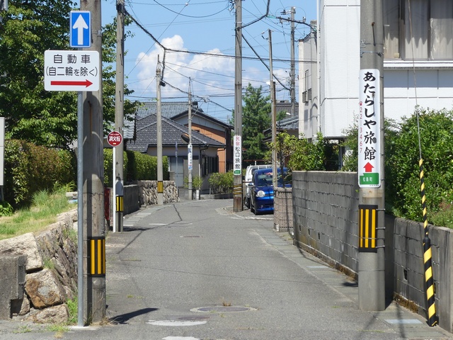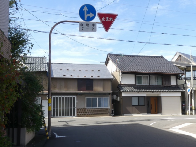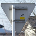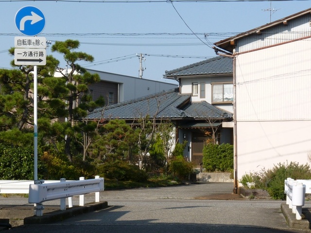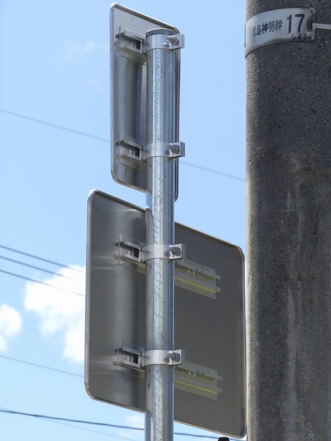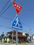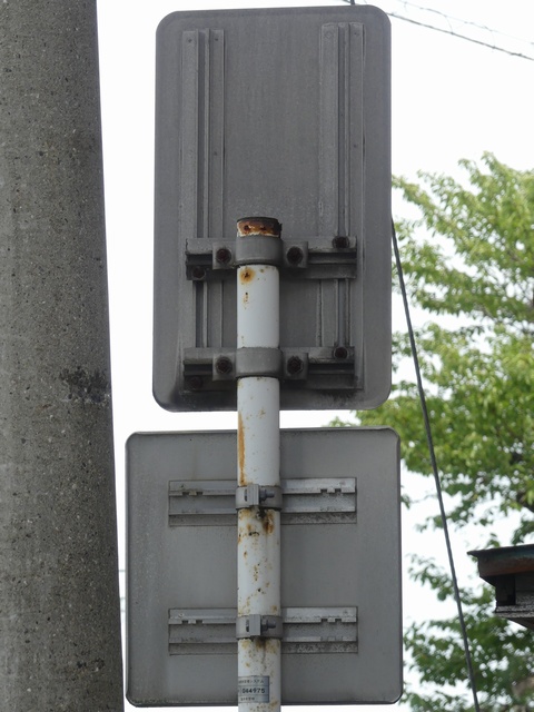 この付近にある駐車場の出入口の位置が変更になったときに路側式標識が邪魔になるためこちらに移設したようです。 |