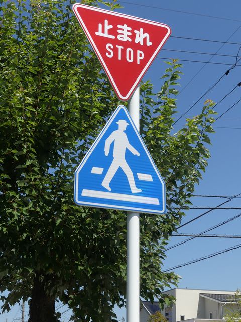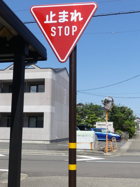 | 停止線から離れすぎた「一時停止」標識 |