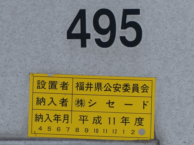 福井鉄道の停留所ではコンクリート壁に埋め込まれて設置されています。 |