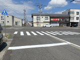 この場合、二輪および軽車両に対する停止線が存在しないことになりますので、二輪および軽車両は横断歩道の直前で停止することになります。 |