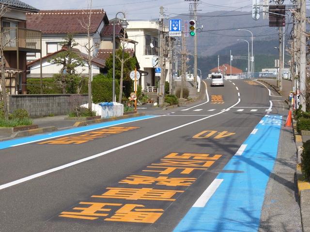 住宅街の約500mの区間で規制が行われています。なお、当初は、区間内では自転車歩道通行可の指示も同時に行なわれており、自転車は歩道を走行することもできました。