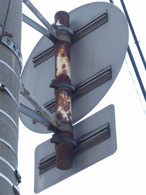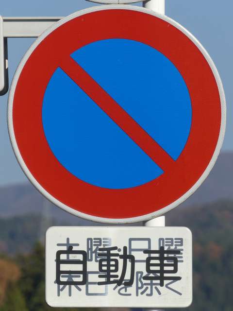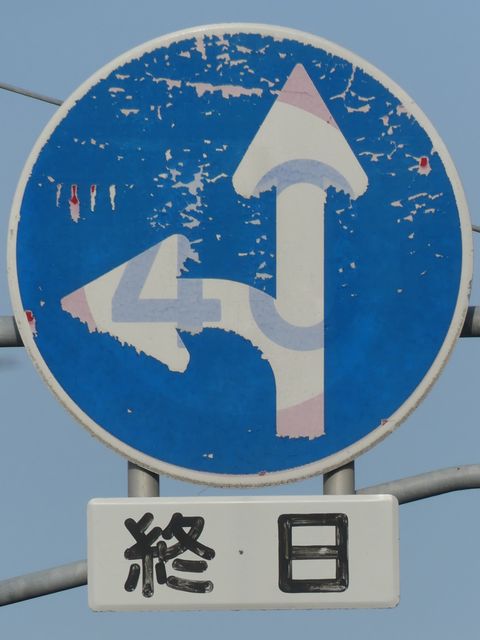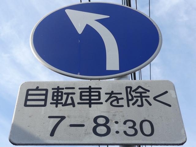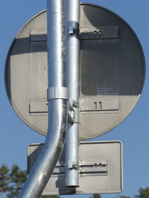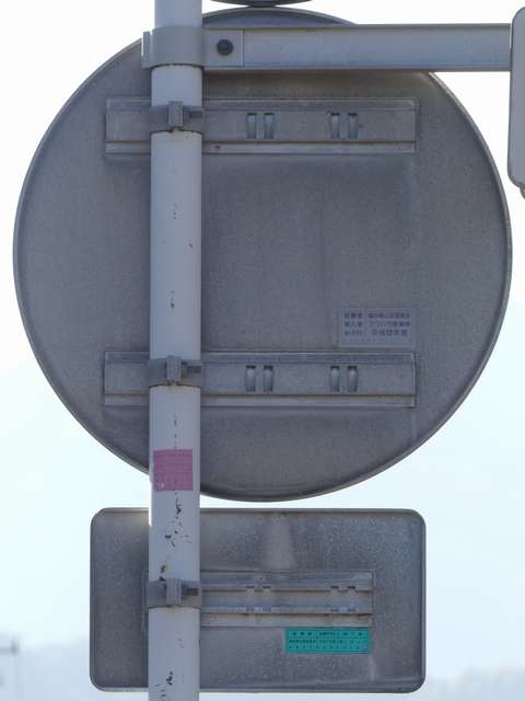 ほとんどが本標識は平成12年度のラベルがあるもので、補助標識はそれより前のラベル(水色のラベルは平成5年度、緑色のラベルは平成7年度、桃色のラベルは平成9年度)があるものです。 北進車線 1枚目「土曜・日曜・祝日を除く」 2枚目「日曜・休日を除く7.30-8.30」(上下逆) 南進車線 1枚目 大貨等の記号 2枚目「12月11日から2月末日まで」 3枚目「7-8:30(日曜・休日を除く)」 4枚目「奇数月←」 5枚目「偶数月←」(上下逆) なお、県内で「自動車」を対象とした「駐車禁止」規制は珍しかったですが、平成31年1月に対象車両が車両に変更され、補助標識がほとんど撤去されました。