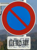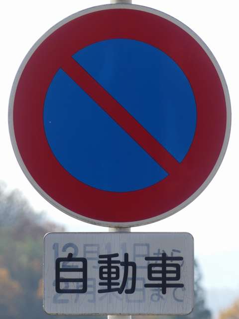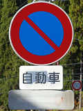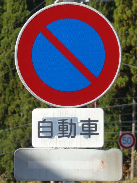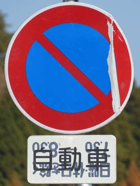 郊外の市道約2.6kmの区間に設置された「駐車禁止」標識の補助標識ですが、ほとんどが別の補助標識を再利用したものでした。元の表示が浮かび上がり、現在の表示「自動車」が見えにくくなっているものもあります。