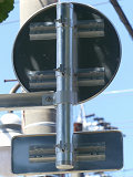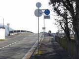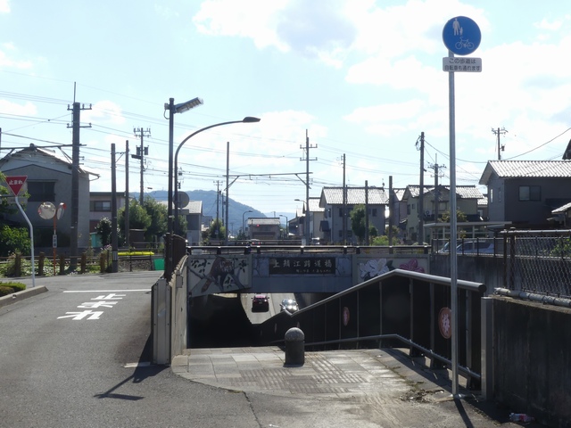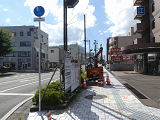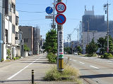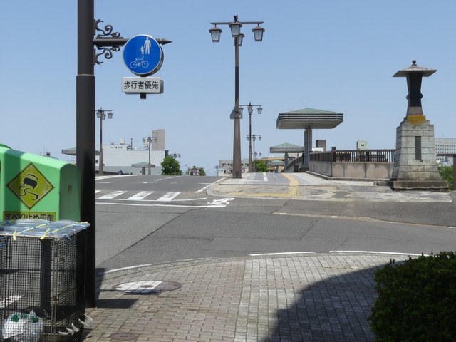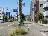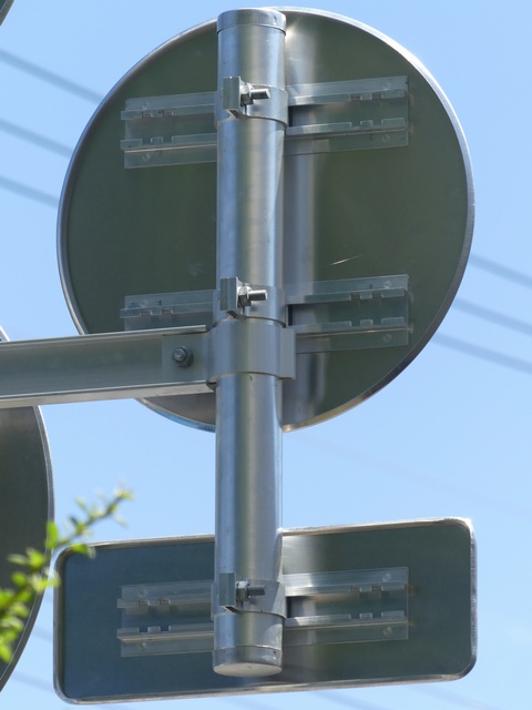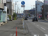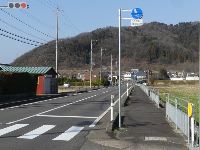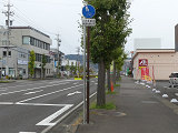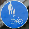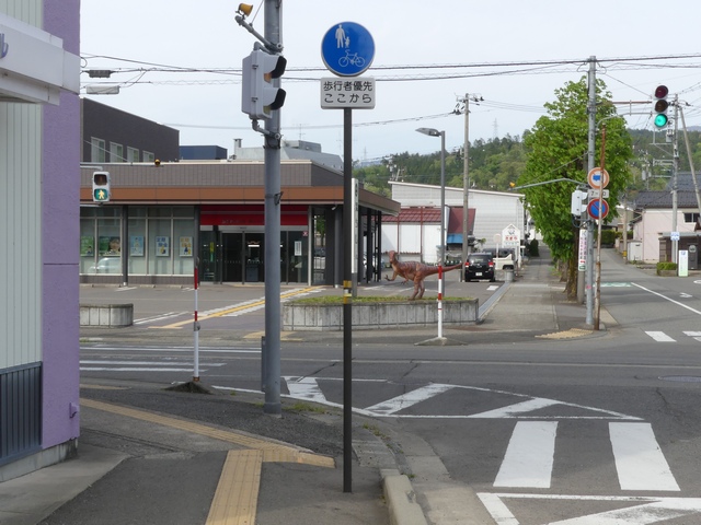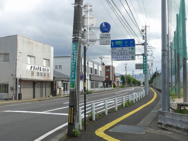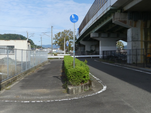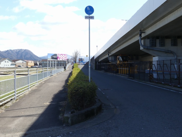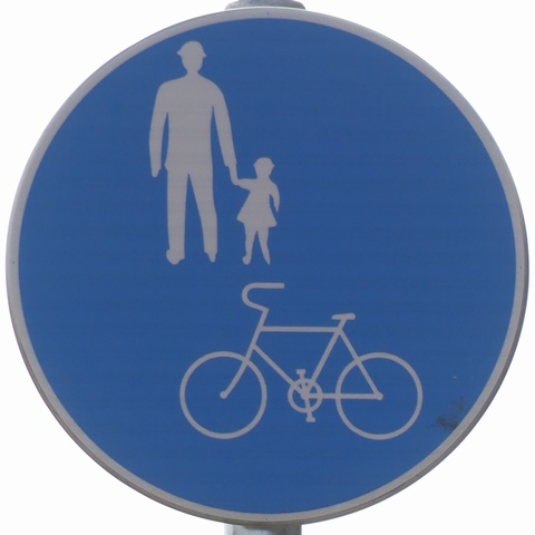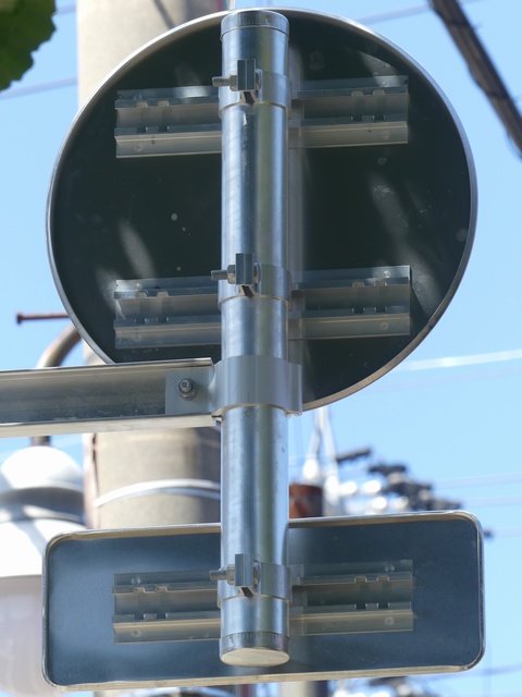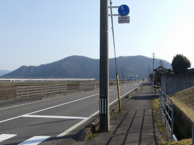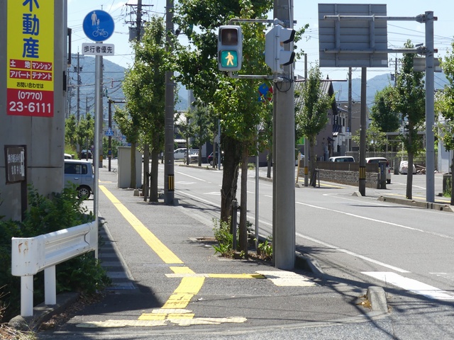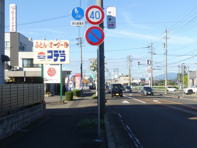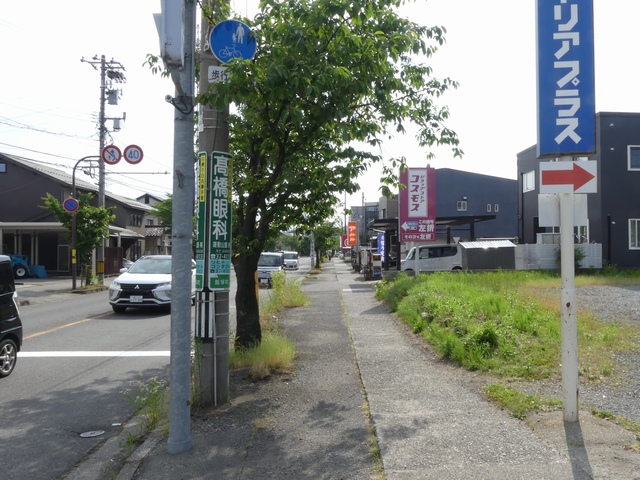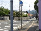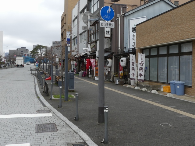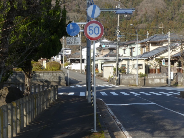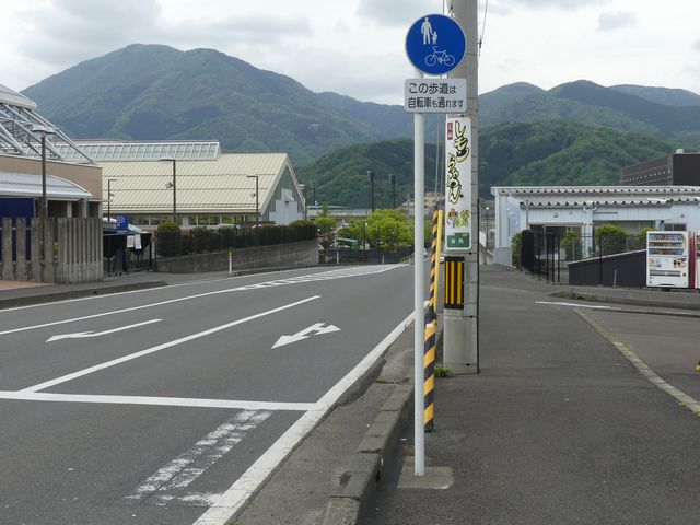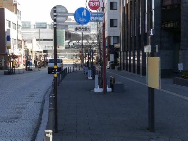 しかし、令和5年7月に特定小型原動機付自転車(特定原付)に関する法整備が行われ、補助標識の「自転車」には「特定原付」も対象に含まれることになりました。歩道を通行できるのは特定原付の中でも特例特定小型原動機付自転車(特例特定原付)に限られるため、従来の補助標識の表示では特例特定原付以外の特定原付も歩道を通行できると勘違いさせてしまうためか、令和5年度工事からは補助標識の表示が「歩行者優先」に変更されました。 昭和のころは「自転車歩道通行可」、平成に入ると「この歩道は自転車も通れます」に変更され、一部で「自転車歩道通行可」も使用されました。 この場所では、強風による道路標識の倒壊の復旧で令和5年5月に設置されました。倒壊前は補助標識が欠損していましたが、もとは「この歩道は自転車も通れます」が附置されていました。