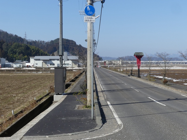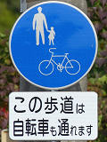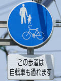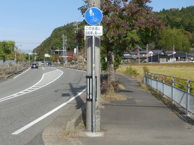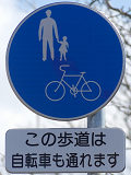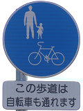 福井県では従来、自転車歩道通行可の補助標識は「この歩道は自転車も通れます」又は「自転車歩道通行可」を附置していました。