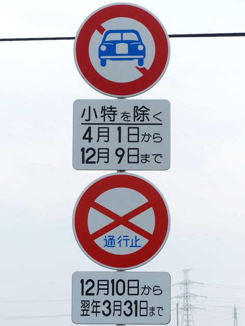 なお、現在は冬期の車両通行止め規制が廃止され、通年の二輪を除く自動車通行止め(軽自動車・小特を除く)規制となっています。 |