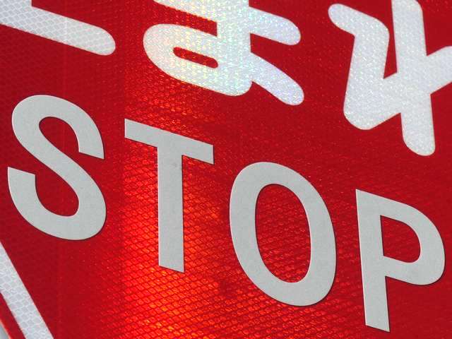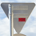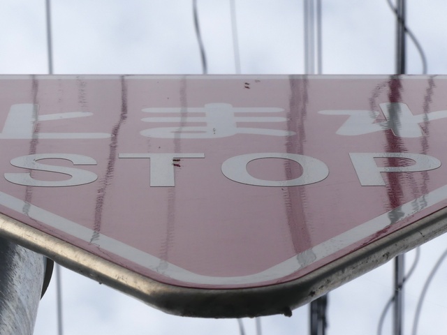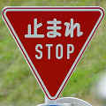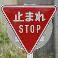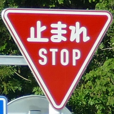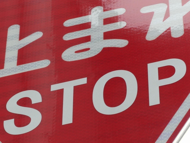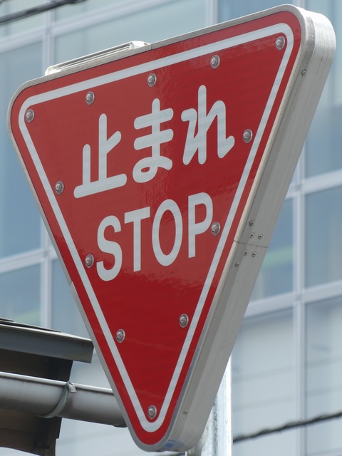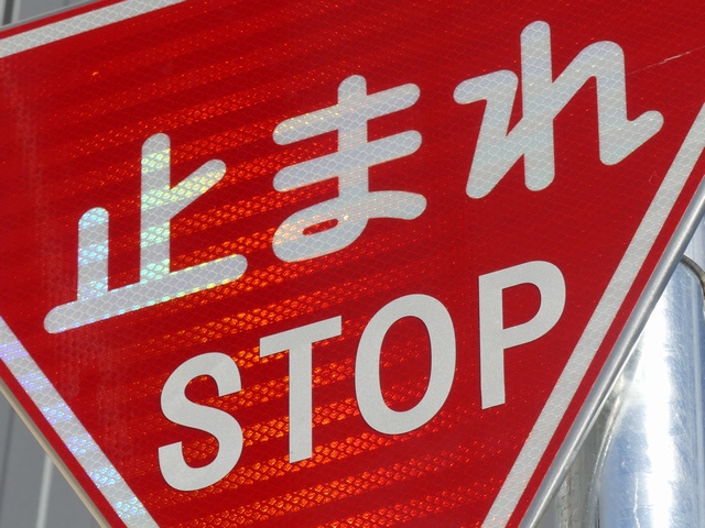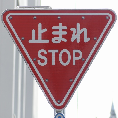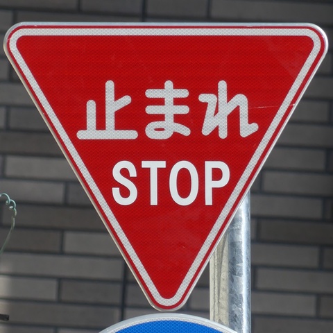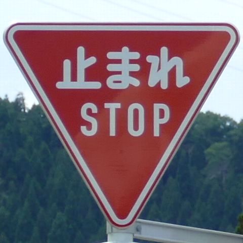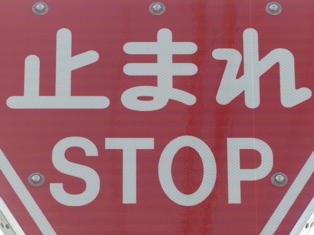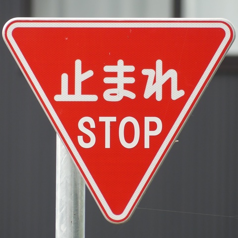 標識令改正前の在庫品に「STOP」を追加したのか、誤って従来型を製造してしまったため「STOP」を追加して対応したのか、あるいは試作品を誤って設置してしまったのでしょうか? 「STOP」のフォントが本来のものと異なります。
