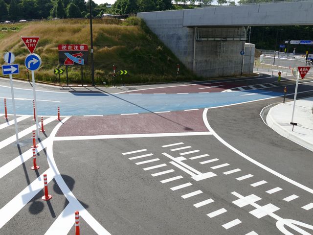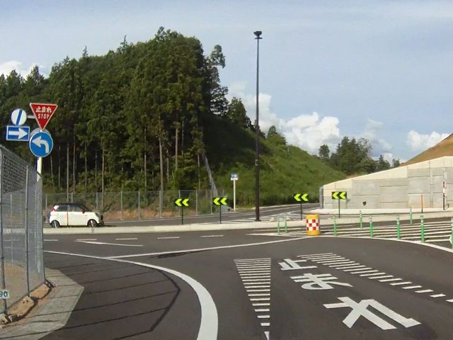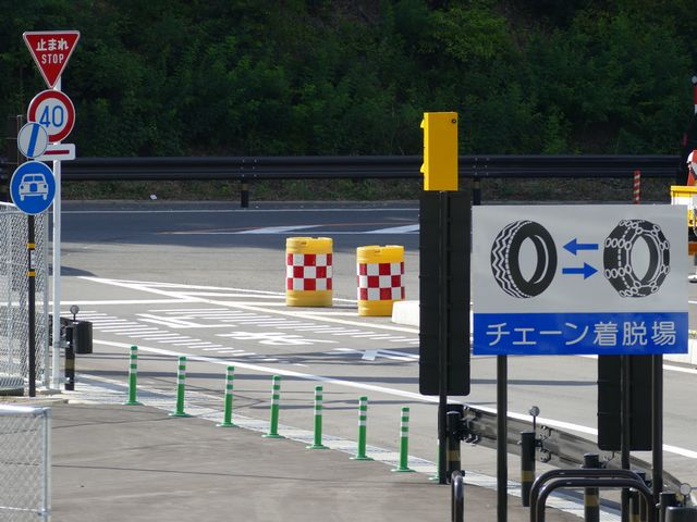 福井県内では、中部縦貫自動車道永平寺IC〜上志比ICの開通を3日後に控えた7月5日に両ICで初めて設置されました。永平寺ICでは、IC内で入口ランプと出口ランプが平面交差しているため、また、出口と一般道路との交差点に信号がないため「一時停止」規制が行われています。