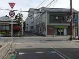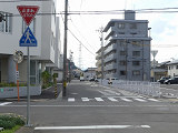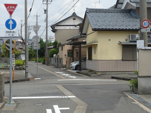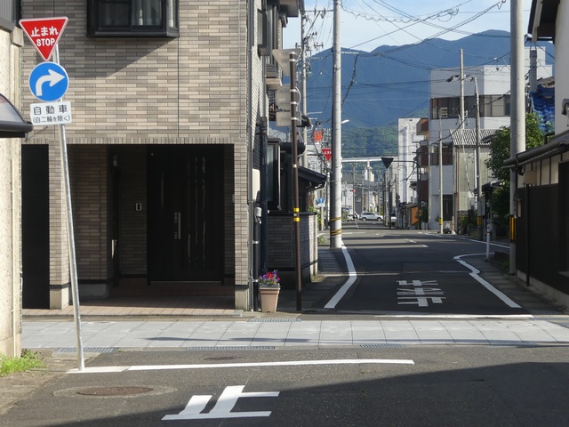 なお、この道路では2021年4月に一方通行規制解除に伴い、元逆走側で指定方向外進行禁止規制が行われることになり、交差点の約20m手前に当該標識が設置されましたが、わずか2か月後の2021年6月には一時停止規制が行われることにより交差点直近に移設されました。