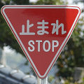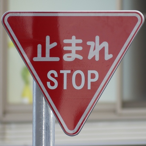 訪日外国人の増加に対応するため、平成29年7月1日施行の改正標識令で従来の「止まれ」表示に「STOP」を併記した「一時停止」標識が新たに制定されました。