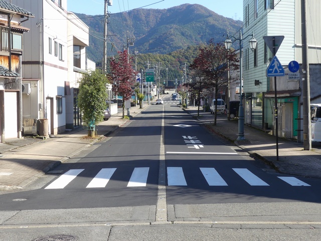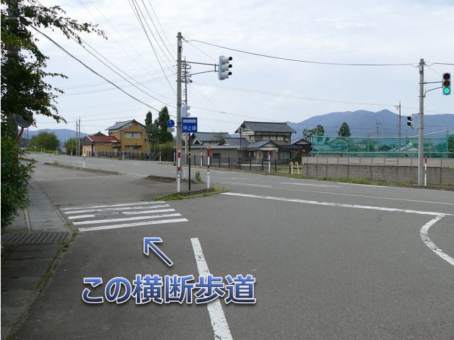信号機のない横断歩道は「横断歩道」標識と道路標示「横断歩道」の双方の設置が法令上要件となっていますが、ここでは道路標識が設置されていませんでした。また、横断歩道手前のダイヤマークの道路標示も設置されていません。