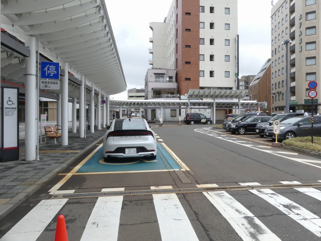 福井駅東口のロータリーで行われている「駐車可」の指定です。