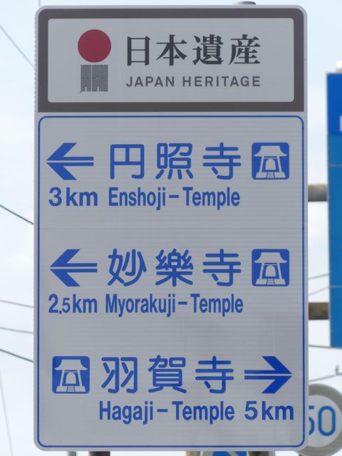 こちらでは、更新前は同じ内容の旧型の「著名地点」標識が設置されており、「円照寺」「妙樂寺」「羽賀寺」とも「重文」(「重要文化財」の略)と併記されていました。現行の「著名地点」標識に更新されたことにより、矢印の配置が変わり、また寺院の記号が入るなどし、文字が小さくなりました。