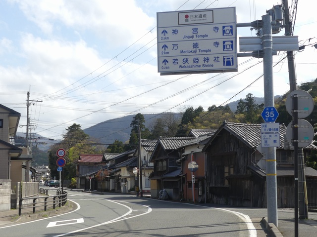 更新前は同じ内容の旧型の「著名地点」標識が設置されており、「神宮寺」「万徳寺」「羽賀寺」とも「重文」と併記されていました。現行の「著名地点」標識に更新されたことにより、矢印の配置が変わり、また寺院の記号が入るなどし、文字が小さくなりました。