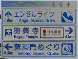 更新前は同じ内容の旧型の「著名地点」標識が設置されており、「国宝」と併記されていました。現行の「著名地点」標識に更新されたことにより、矢印の配置が変わり、また寺院の記号が入るなどし、文字が小さくなりました。