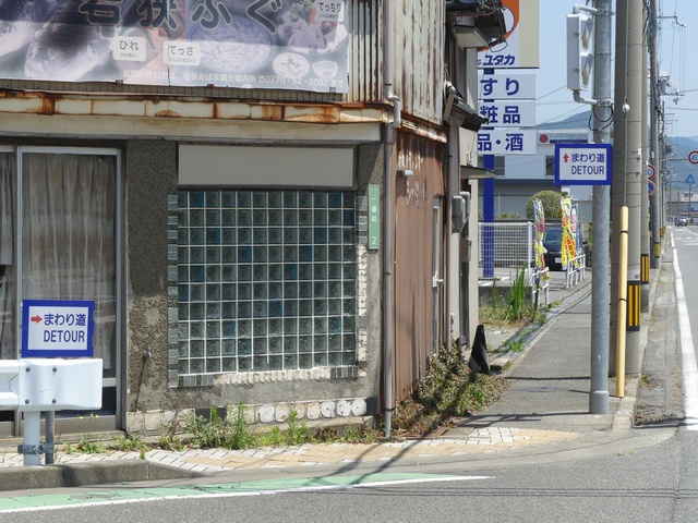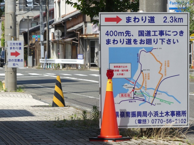 R162から迂回路に入る「小浜NTT前」交差点です。
