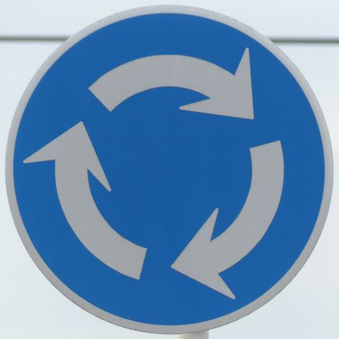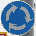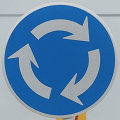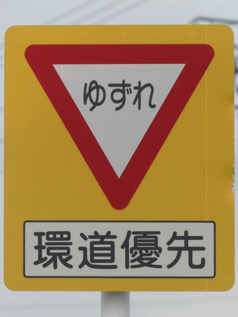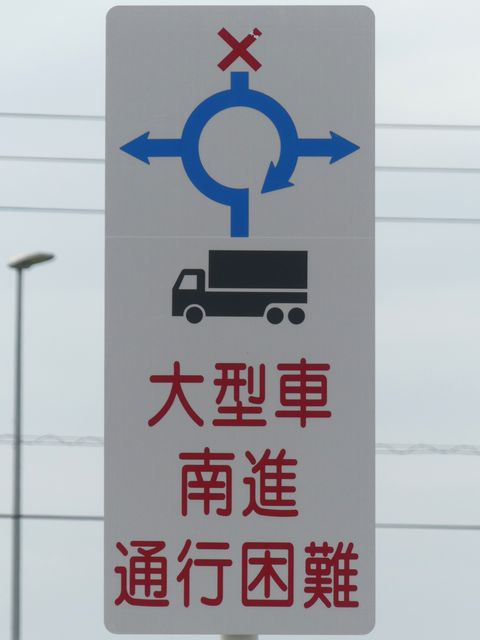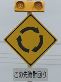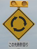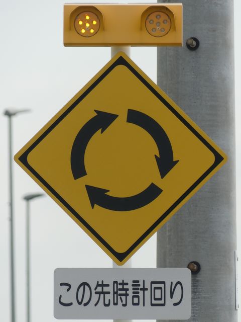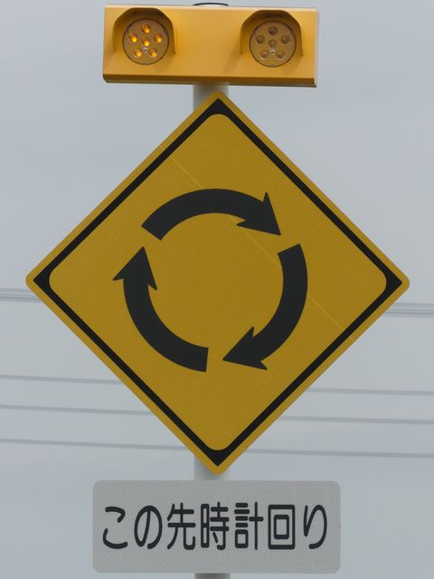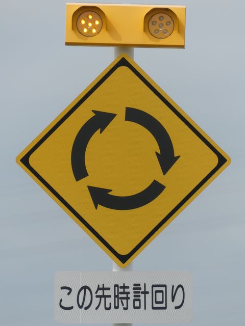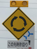 環状交差点の標識は4枚のうち2枚が誤って上下逆に設置されています。また、「ロータリーあり」の標識も一部が上下逆に設置されています。