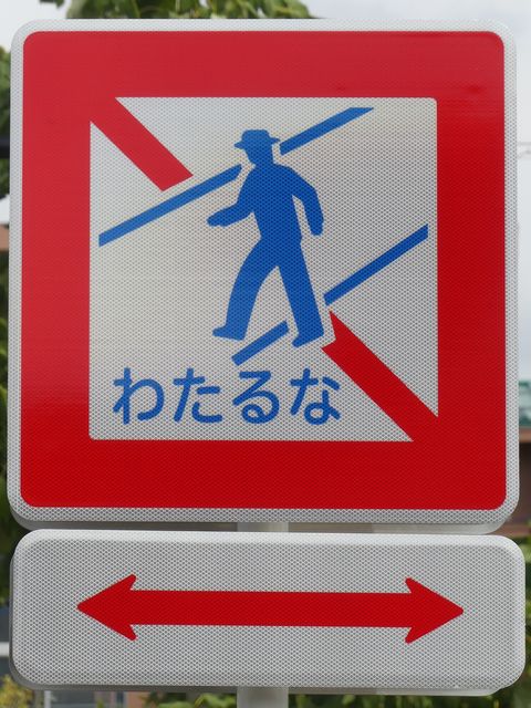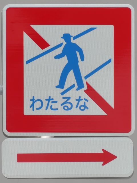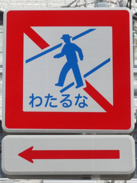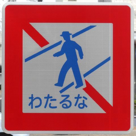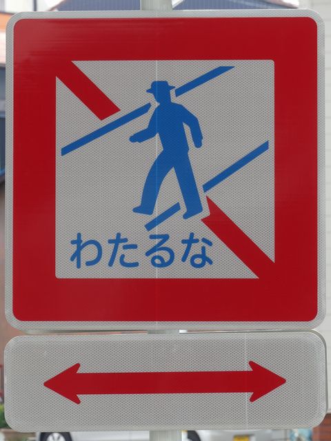 令和元年5月に保育園児ら16人が死傷した事故を受けた未就学児の交通安全対策で、令和2年3月27日に改正標識令が施行され「歩行者横断禁止」標識の表示を「わたるな」にできるようになりました。