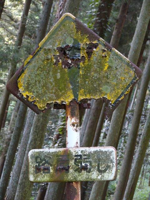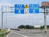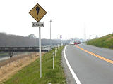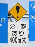 案内標識のとおり、この400m先で左車線と右車線が分離しています。分離地点にもオーバーヘッド式で「その他の危険」標識が設置されています。