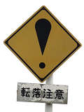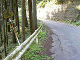 堤防沿いの道路です。デリニエーター(視線誘導標)はありますがガードレールは無く、ハンドル操作を誤ると斜面の下に真っ逆さまです。