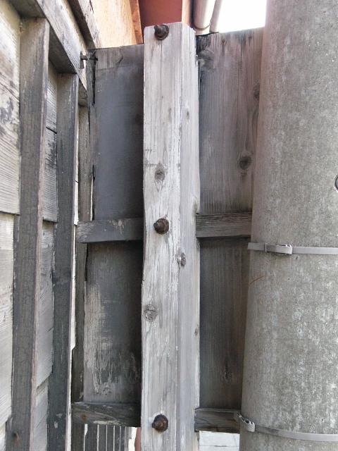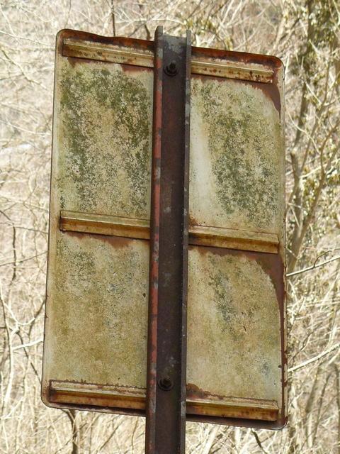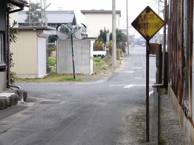 標識板の裏が板張りされているのでかなり古いと思われます。標識柱も木製で、なぜかここの管轄ではない「岐阜県交通安全協会不破支部/垂井警察署」の表示があります。