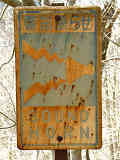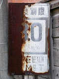 「速度制限 30Km/h SPEED LIMIT」と「最高速度 30Km/h MAXIMAM SPEED」の表示が二重に書かれています。「速度制限」は昭和25年から35年まで使われた標識で、「最高速度(MAXIMAM SPEED)」は昭和35年から38年まで使われた標識です。昭和35年「標識等に関する命令」が制定されたときに書き換えられたのでしょう。