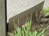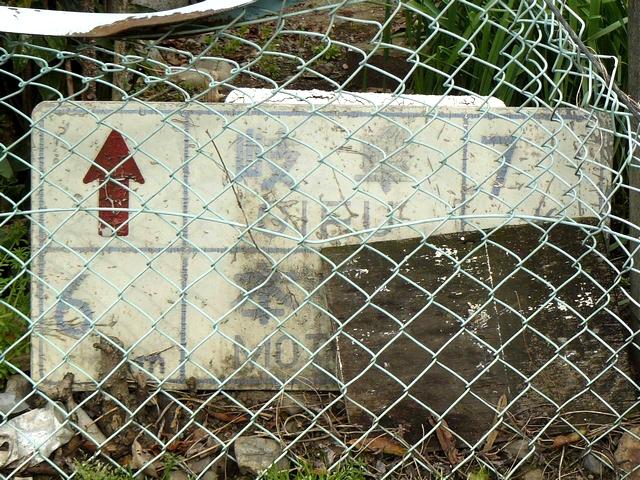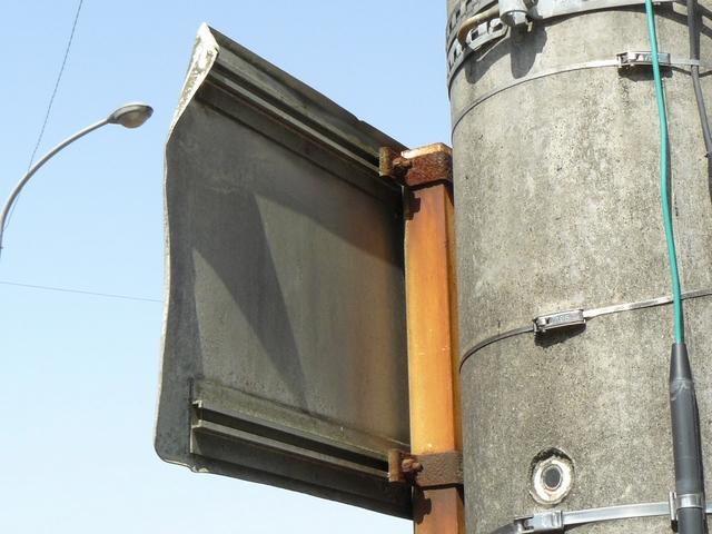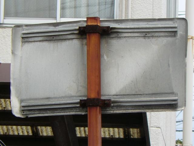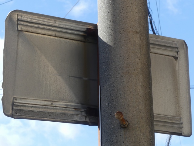 地べたに置かれており、どこにどのように設置されていたのか不明です。標識の裏側は、設置金具が無くまっ平らです。