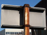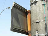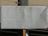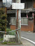 なぜか標識が裏向きになっていますが、全景画像に写っている交差点の案内です。標識柱には「岐阜日日新聞社・ラジオ岐阜」の文字が見えます。企業が寄贈したものでしょうか? 「ラジオ岐阜」は昭和37年に設立、昭和43年に「岐阜放送」に改称されたので、その間に設置されたことになります。