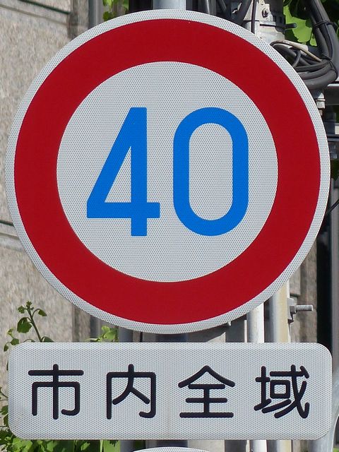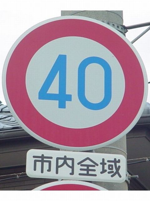 神戸市内は全域で最高速度40キロ規制が実施され、すべて(高速道路のランプ道路等を除く)の「最高速度40キロ」標識には補助標識「市内全域」が附置されています。