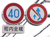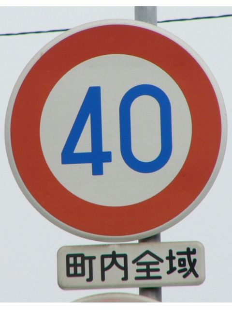 太子町内は全域で最高速度40キロ規制が実施され、すべて(高速道路のランプ道路等を除く)の「最高速度40キロ」標識には補助標識「町内全域」が附置されています。