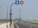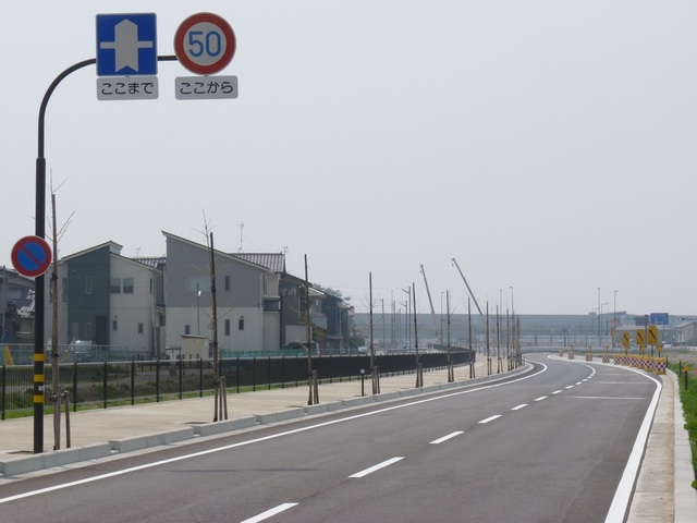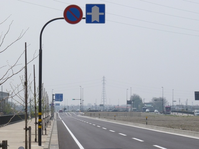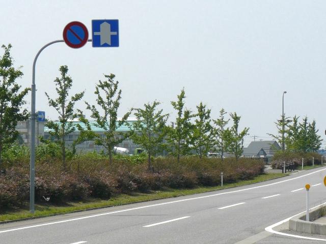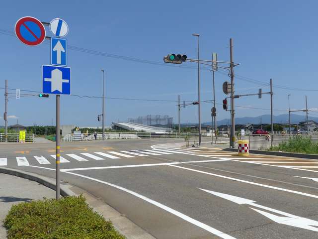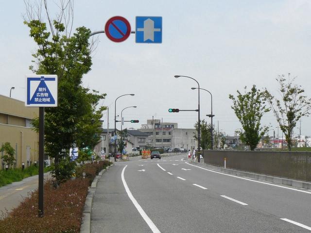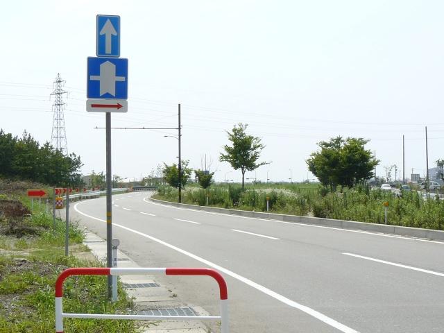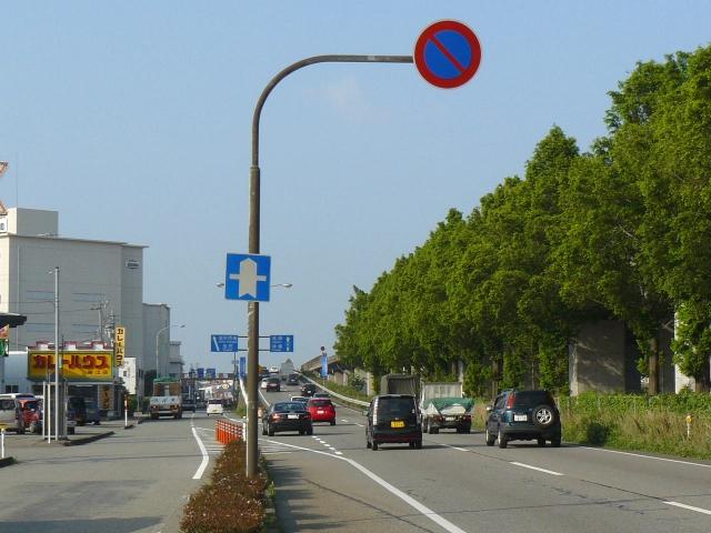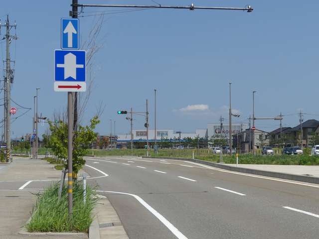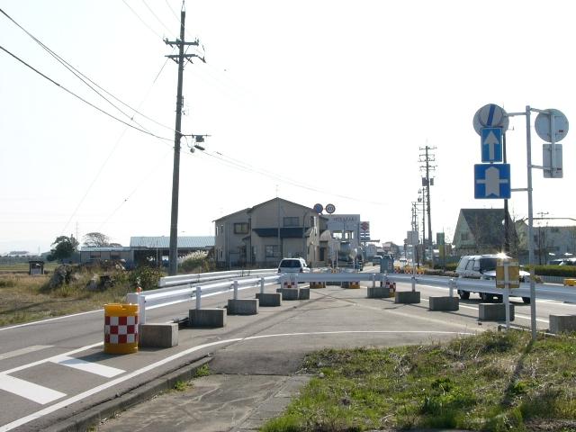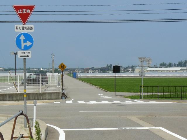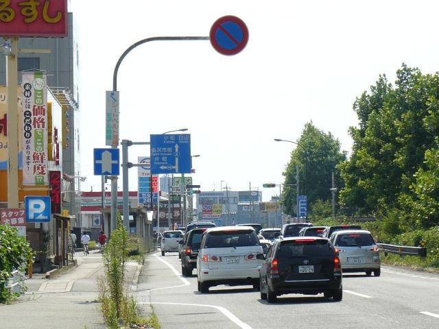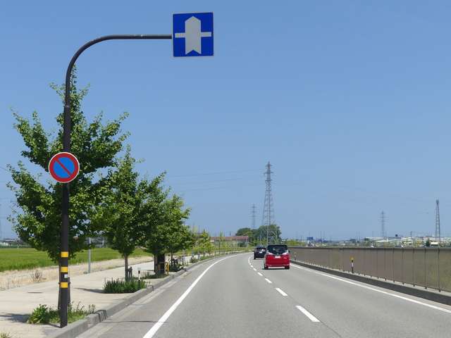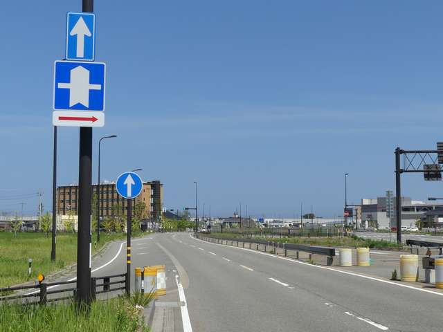 2012年4月に北陸自動車道白山IC開通と同時に金沢外環状道路海側幹線「福増町南」交差点以南が開通し、上下線分離区間が白山市あさひ荘苑付近まで延伸されたのに伴い、「優先道路」の指定区間も同所まで延長されました。既開通区間では区間内のほぼ信号交差点ごとに「優先道路」標識が設置されていましたが、今回の開通区間では、信号のない交差点の手前のみの最小限の設置となっています。なお区間内は、通行帯が2以上あり「車両通行帯」の道路標示が交差点内まで設置されているため、「優先道路」標識を設置しなくても優先道路となっています。