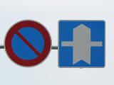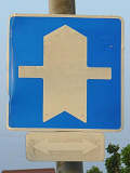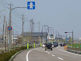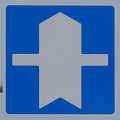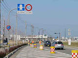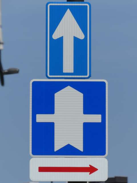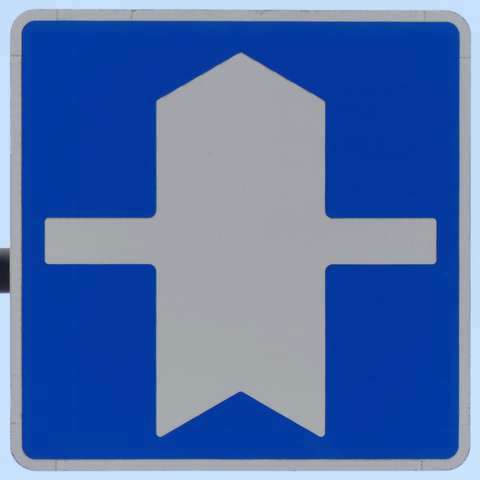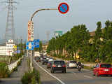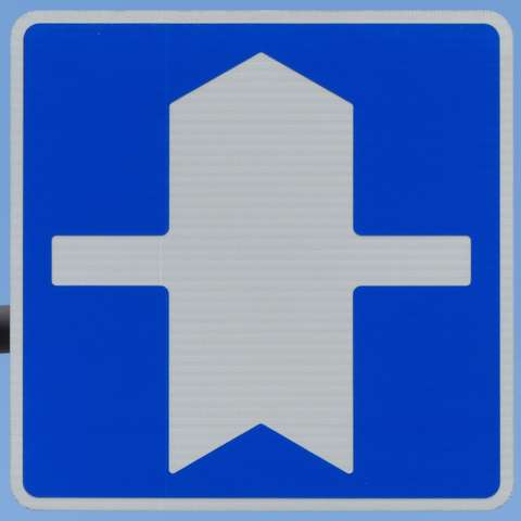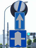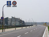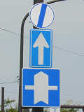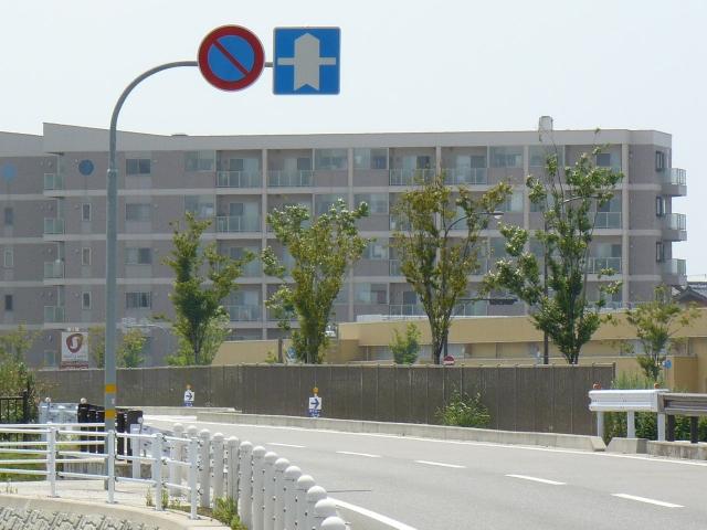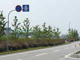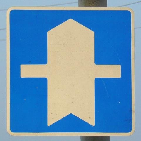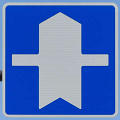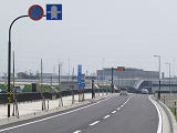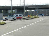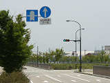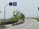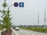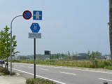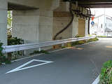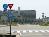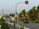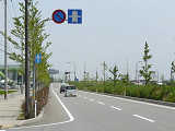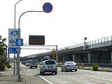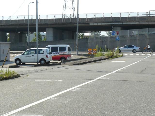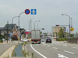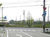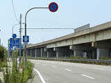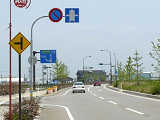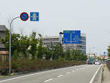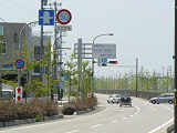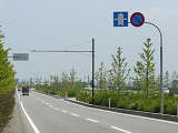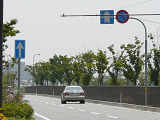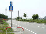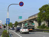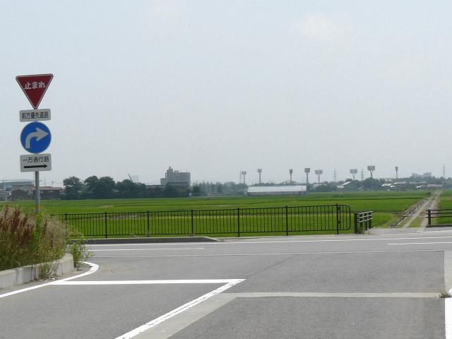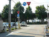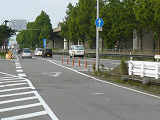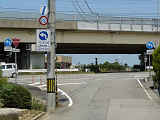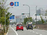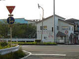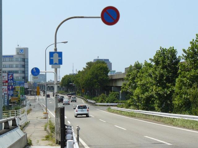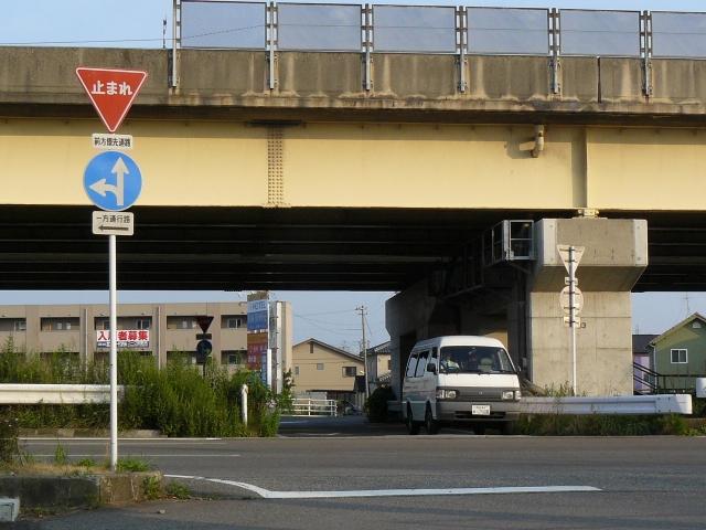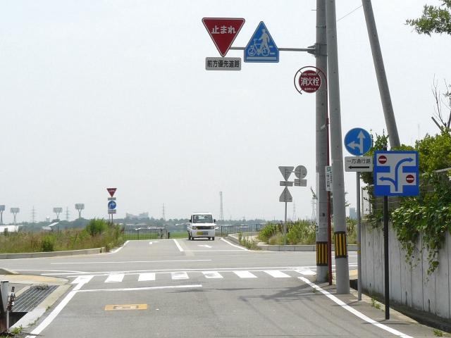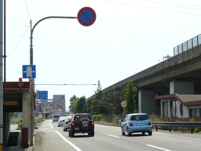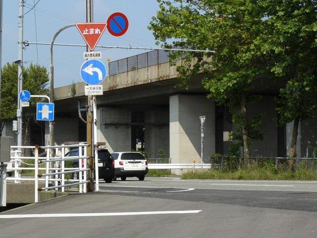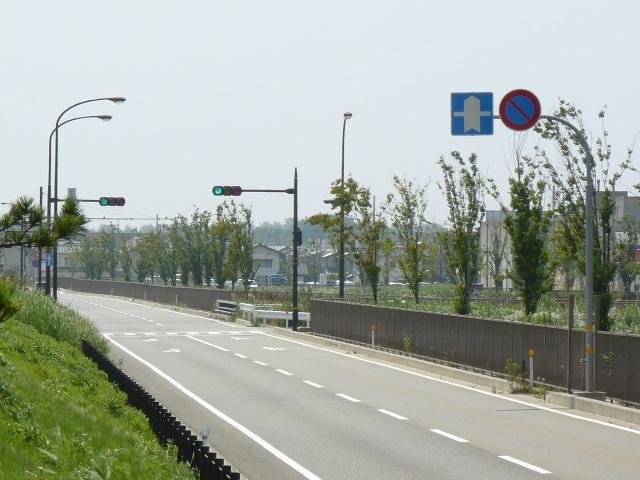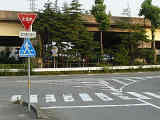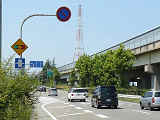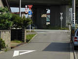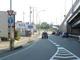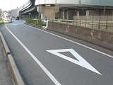 「優先道路」標識の設置されている道路に交差する道路には「前方優先道路・一時停止」標識が設置されている場合が多いですが、「前方優先道路」標識が設置された箇所もわずかにあります。側道が合流する地点です。(平成20年8月1日の法令改正により「前方優先道路・一時停止」標識は廃止されました。解説は改正前のものです。)