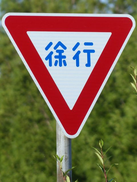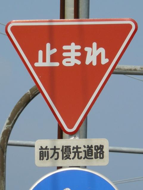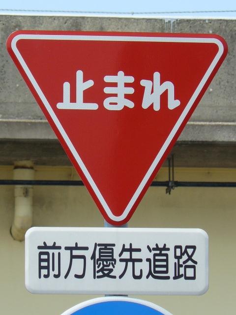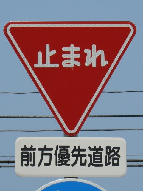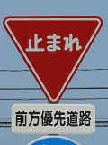 (平成20年8月1日の法令改正により「前方優先道路・一時停止」標識は廃止されました。画像は法令改正前に撮影したものです。)