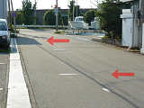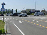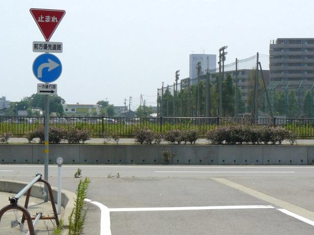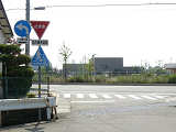 3段目2枚目、3枚目の画像の箇所は、「優先道路」標識の設置されている道路の側道(「優先道路」標識は設置されていない)に交差する場所です。「優先道路」標識が設置されていなくても、交差点内まで「車両通行帯」が表示されているので、優先道路には違いありませんから「前方優先道路・一時停止」標識を設置しても間違いではありません。しかし「優先道路」標識の設置されていない道路に交差する道路に設置されているのは、県内でこの2箇所のみでしょう。