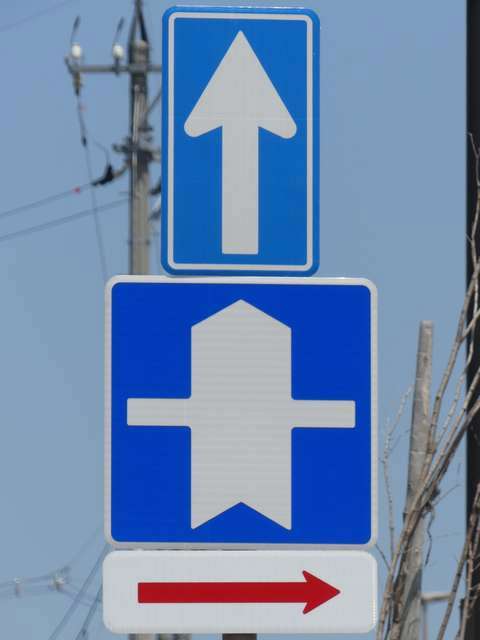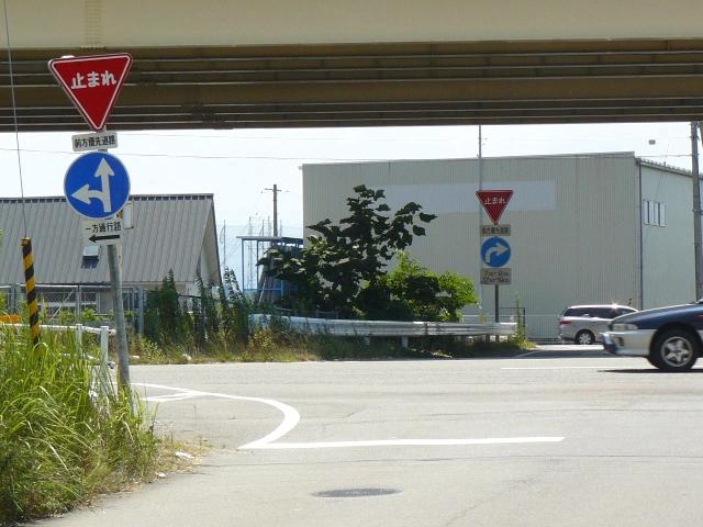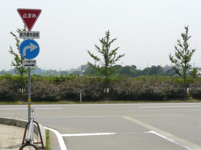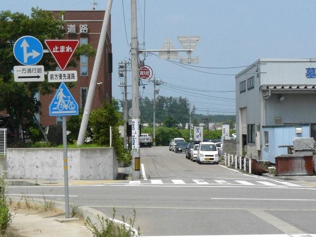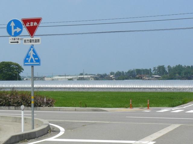 5段目2枚目、3枚目の箇所は前述の「前方優先道路・一時停止」標識と同様、「優先道路」標識の設置されていない道路に交差する場所です。同様に間違いではありませんが、県内ではここだけでしょう。