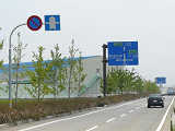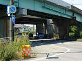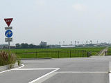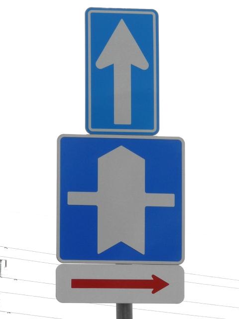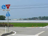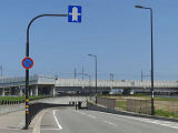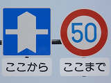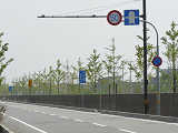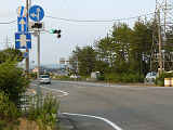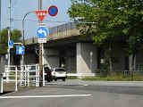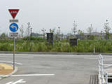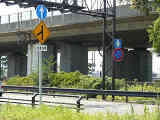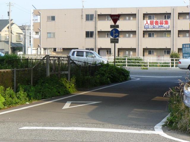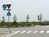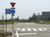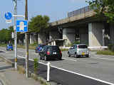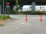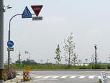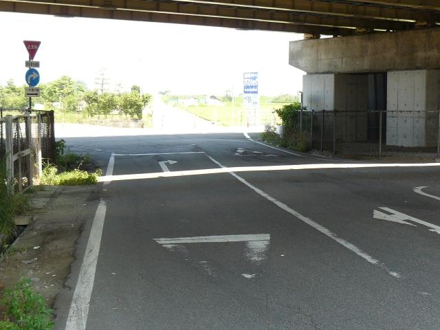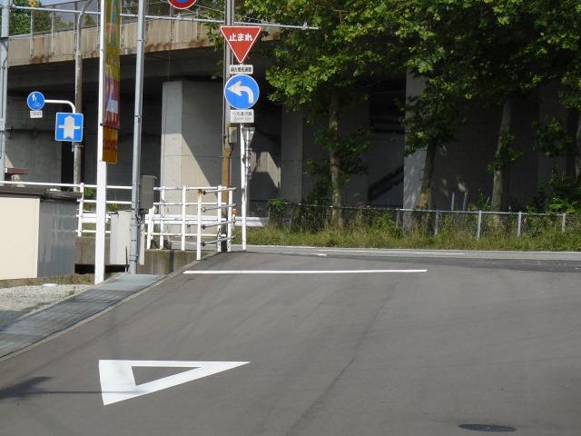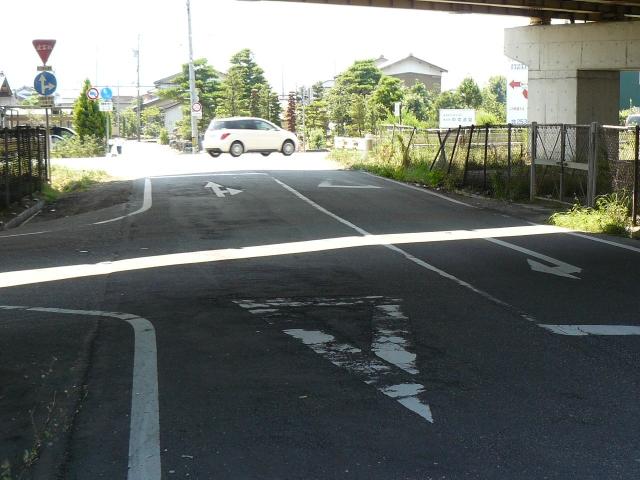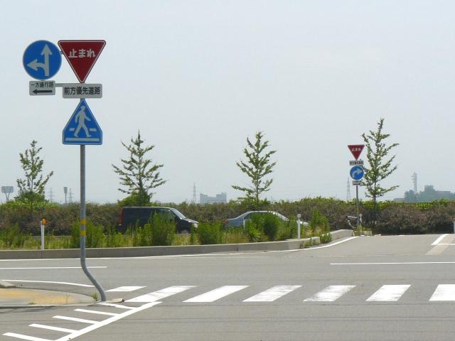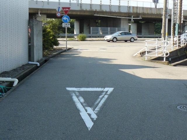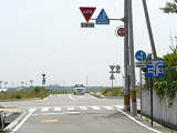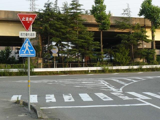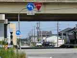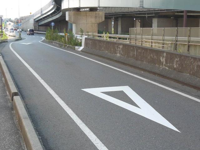 こちらは高速道路出口のランプ道路が標識による優先道路に合流する箇所です。