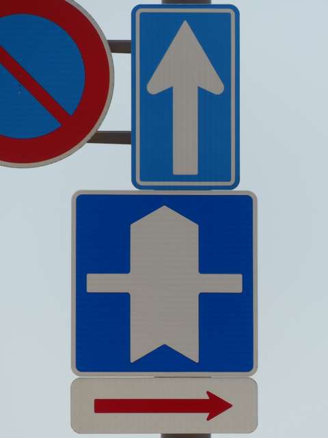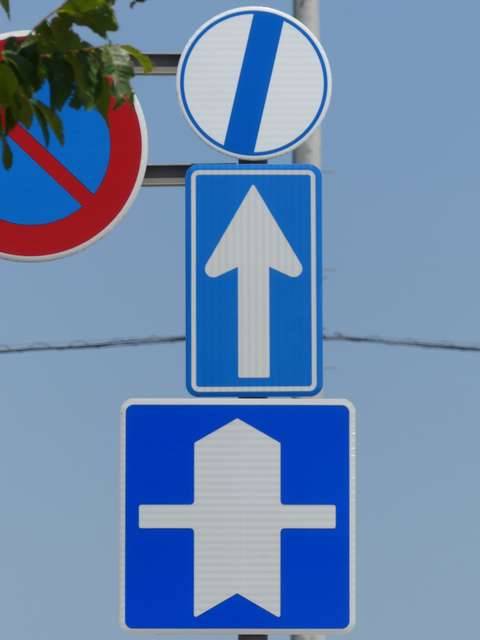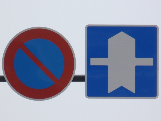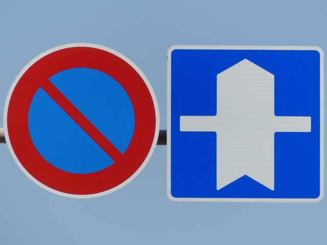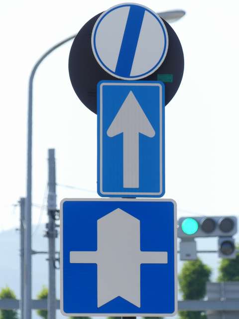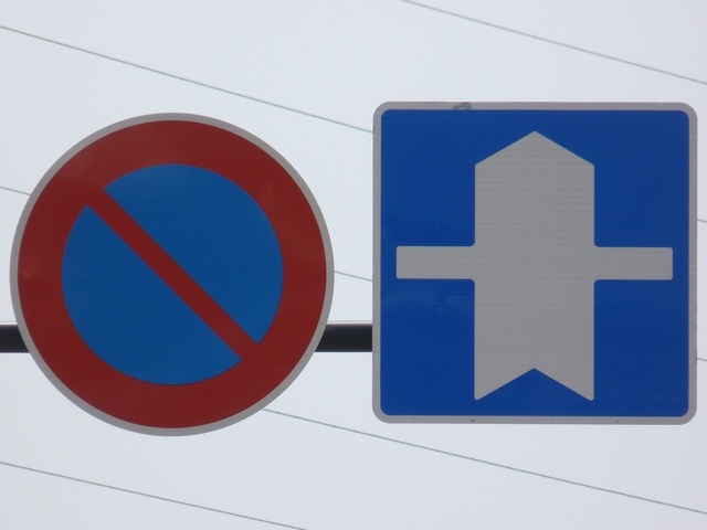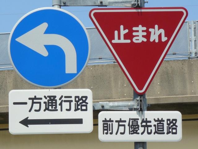 「優先道路」標識の設置されている道路に交差する道路には「前方優先道路・一時停止」標識が設置されている場合が多いです。交差する道路が明らかに狭い場合は、単なる「一時停止」標識が設置されたり、一時停止・徐行関連の標識が設置されない場合もあります。