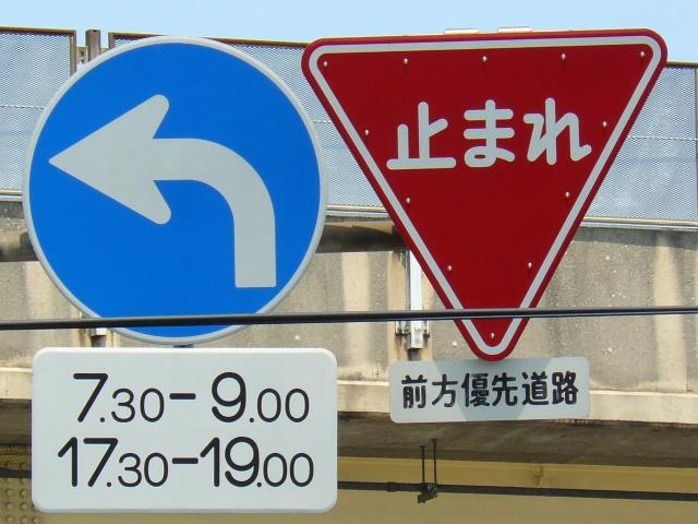 (平成20年8月1日の法令改正により「前方優先道路・一時停止」標識は廃止されました。解説は改正前のものです。)